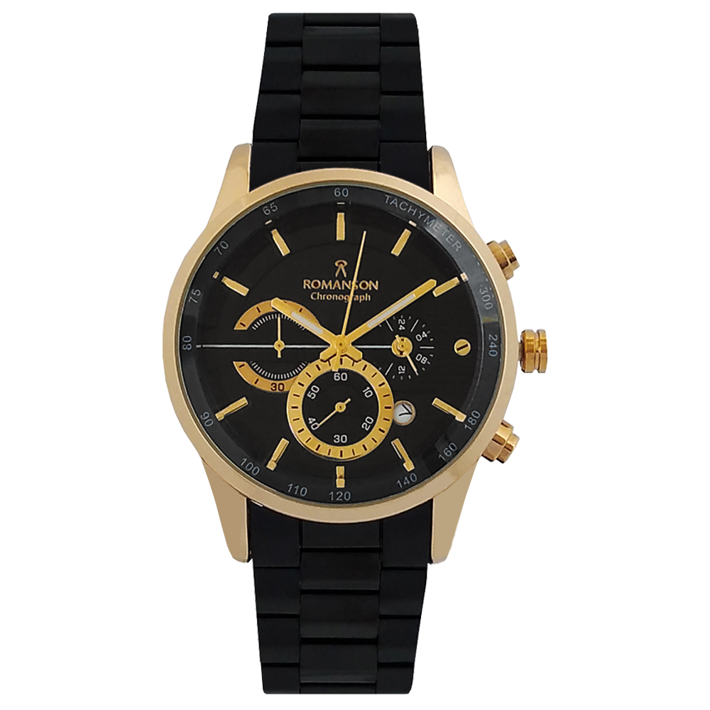 ساعت بندفلزی رومانسون مردانه طلایی مشکی ضدآب رنگ ثابتROMANSON سه موتورفعال کرنوگراف