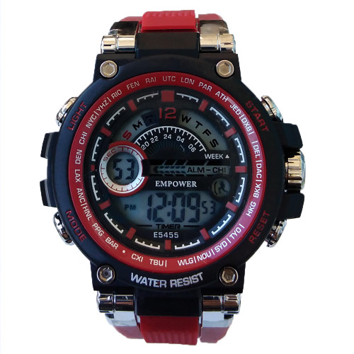 ساعت اسپرت ورزشیSPORT مچی دیجیتال مردانه امپاور مشکی قرمز EMPOWER مقاوم در برابر آب چراغدار کرنومتردار