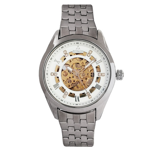 ساعت مردانه اتومات فیترونFITRON اتوماتیک نبضی بندفلزی ضدآب رنگ ثابت عقربه ای بدون باتری ساعت طلایی نقره ای طلایی قفل ضامن دار