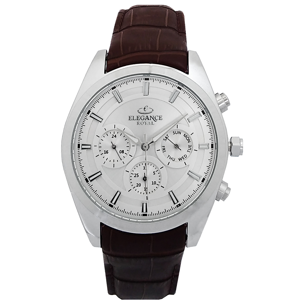 ساعت بندچرمی کرنوگراف الگانس سه موتوره مچی مردانه اسپرت نقره ای SPORT قهوه ایELEGANCE ضدآب سه موتور فعال فول تایم رویال بندچرمی