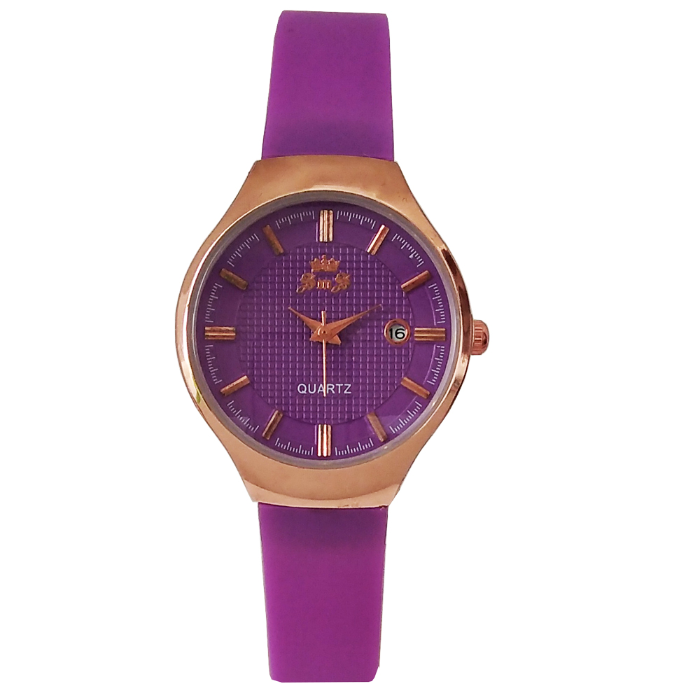 ساعت مچی عقربه ای دخترانه بندسیلیکونی بنفش اسپرت رنگی تاریخ شمار