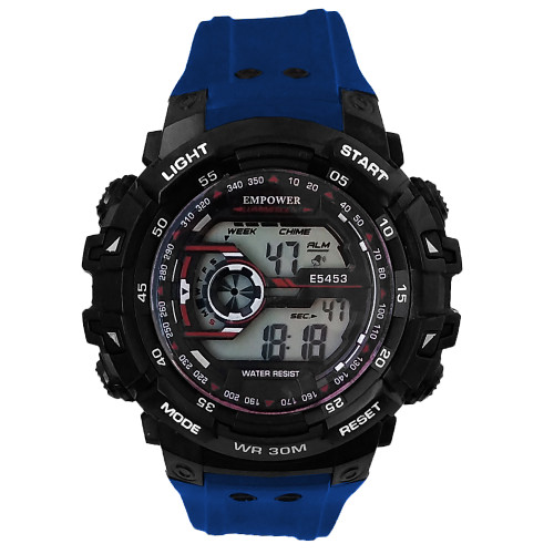 ساعت دیجیتال مردانه امپاور EMPOWERمشکی آبی سورمه ای پسرانه ضدآب کرنومتر دار چراغدار تایمر SPORTباکیفیت تک سوراخ