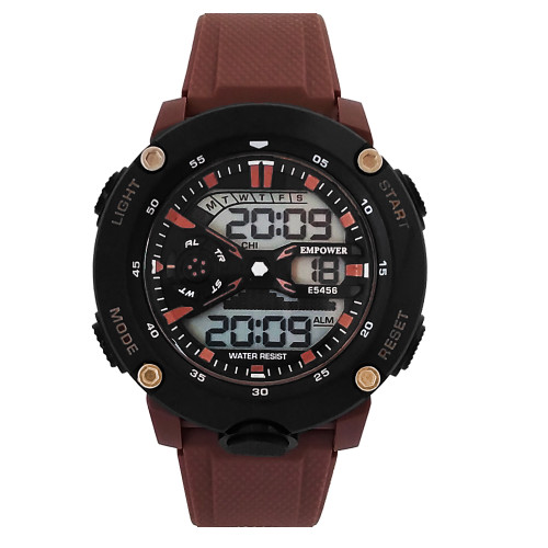 ساعت مشکی قهوه ای امپاور EMPOWER اسپرت ضدآب و ضدضربه کرنومتر آلارم ارسال رایگان چراغدار چراغ هفت رنگ دودیجیتال