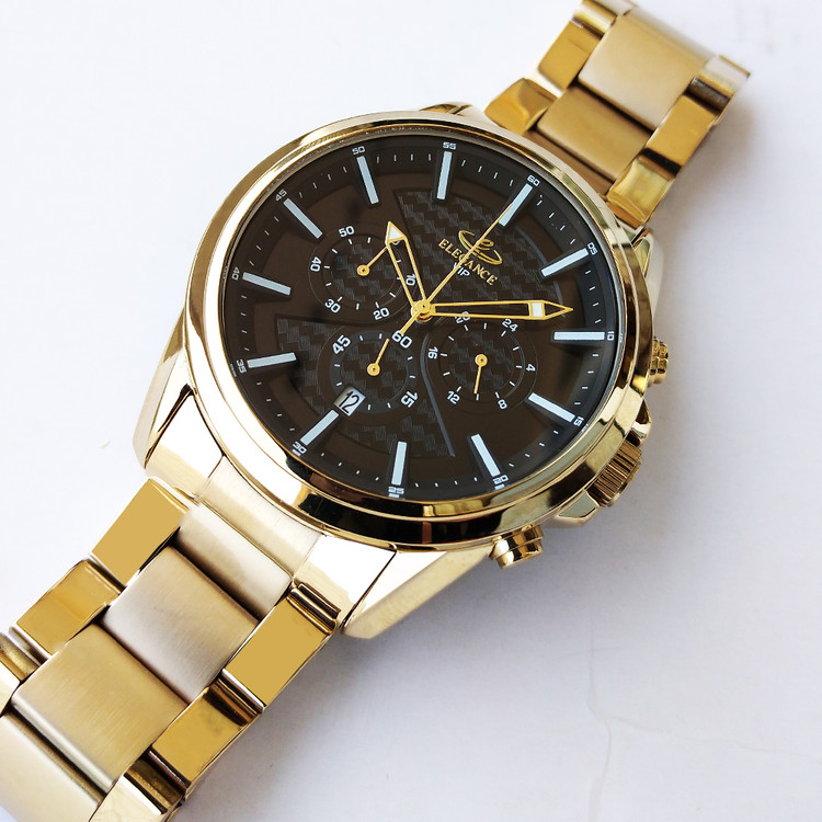 الگانس بند فلزی مردانه ساعت مشکی کرنوگراف سه موتور فعال تاریخ شمار ضدآب 22 ELEGANCE