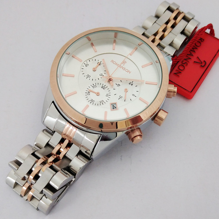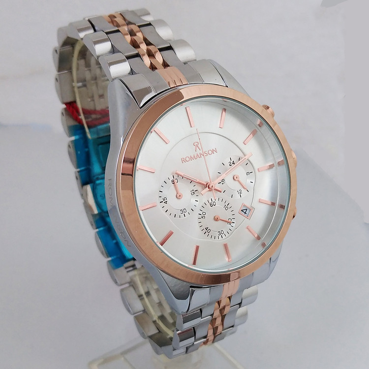 ساعت مچی رومانسونROMANSONمردانه کرنوگراف سه موتور بندفلزی رنگ ثابت ارسال رایگان