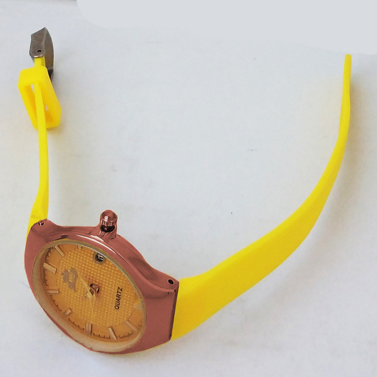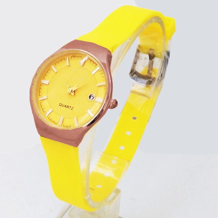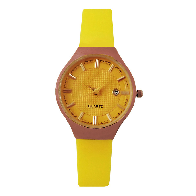 ساعت مچی عقربه ای دخترانه بندسیلیکونی نارنجی زرد اسپرت رنگی تاریخ شمار