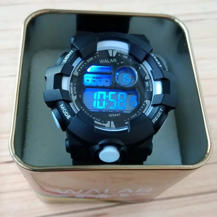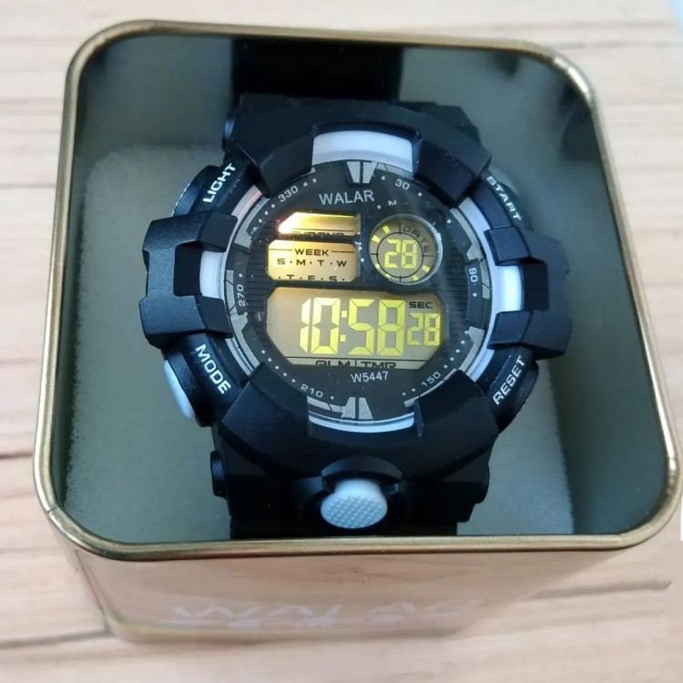 ساعت اسپرت SPORTپسرانه مشکی سفید ورزشی و ضدآب دیجیتال ارسال رایگان کادوخاصWALAR