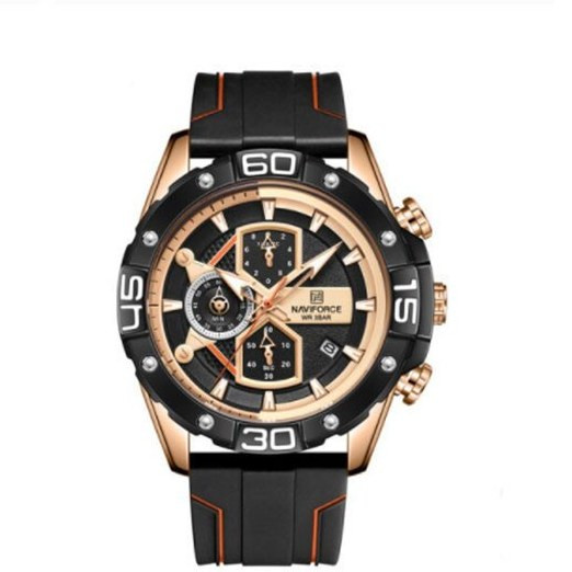 ساعت مچی مردانه نیوی فورس Naviforce NF کرنوگراف سه موتوره ضدآب مشکی رزگلد