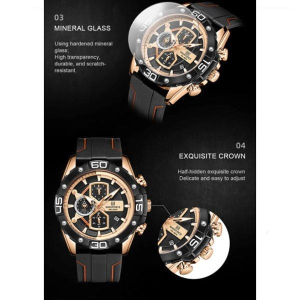 معمولا ساعتهای مچی دارای تقویم روزشمار نیز هستند که در دو نوع مکانیکی و کوارتز وجود دارند. ساعت مچی عقربه ای مردانه نیوی فورس مدل NF 8018 -220328 دارای 3 موتور کوارتز کرنوگراف و تقویم روزشمار است.