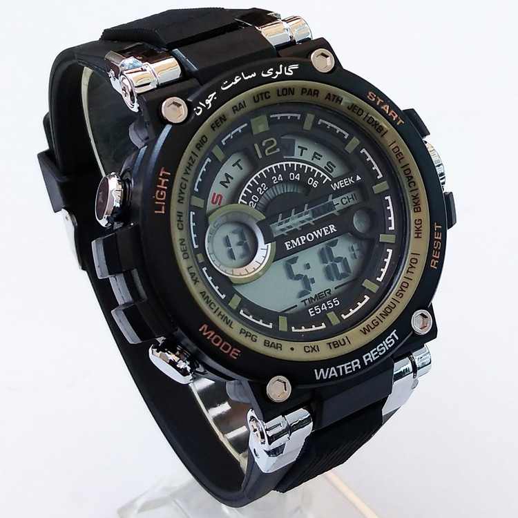 زیتونی مشکی ساعت اسپرت ارسال رایگان ساعت امپاور ساعت مچی دیجیتال مردانه ضدآب کرنومتر دار چراغدار تایمر EMPOWER