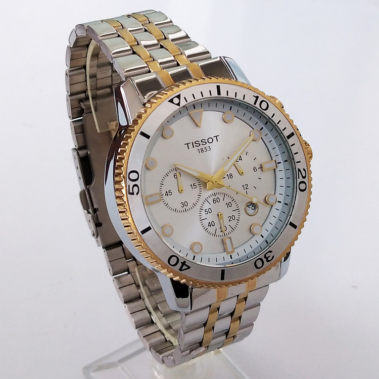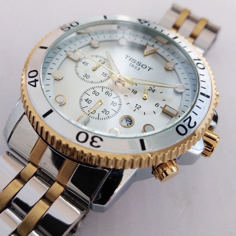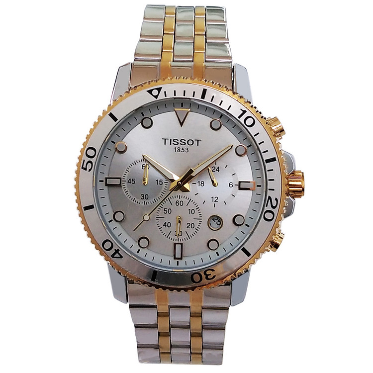ساعت تیسوت سه موتوره فعال کرنوگراف ضدآب رنگ ثابت طلایی نقره ای سفید اسپرت ارسال رایگانTISSOT