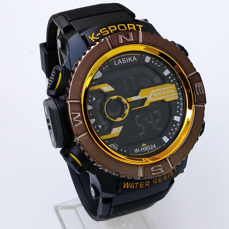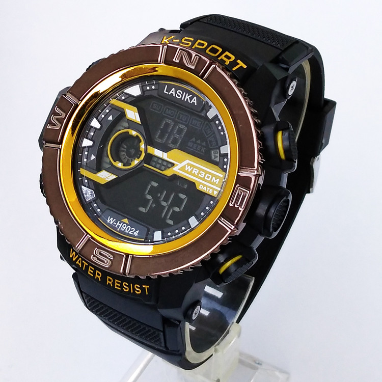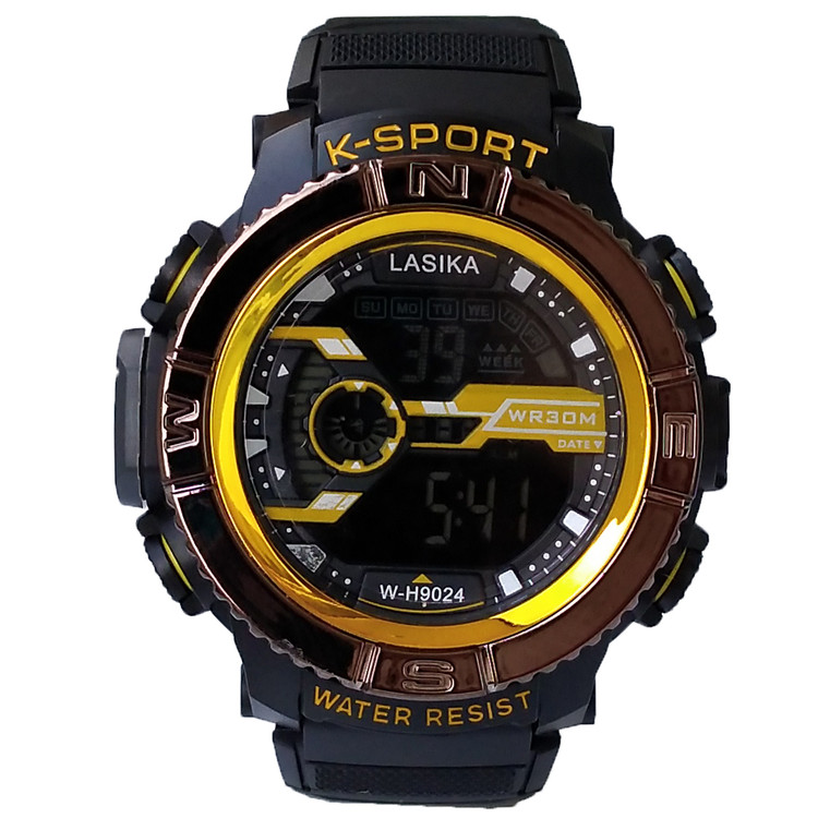 ارسال رایگان ساعت مشکی زرد دیجیتال پسرانه جعبه دار چراغ دار ضدآب SPORT ساعت ارزان کادو شیک