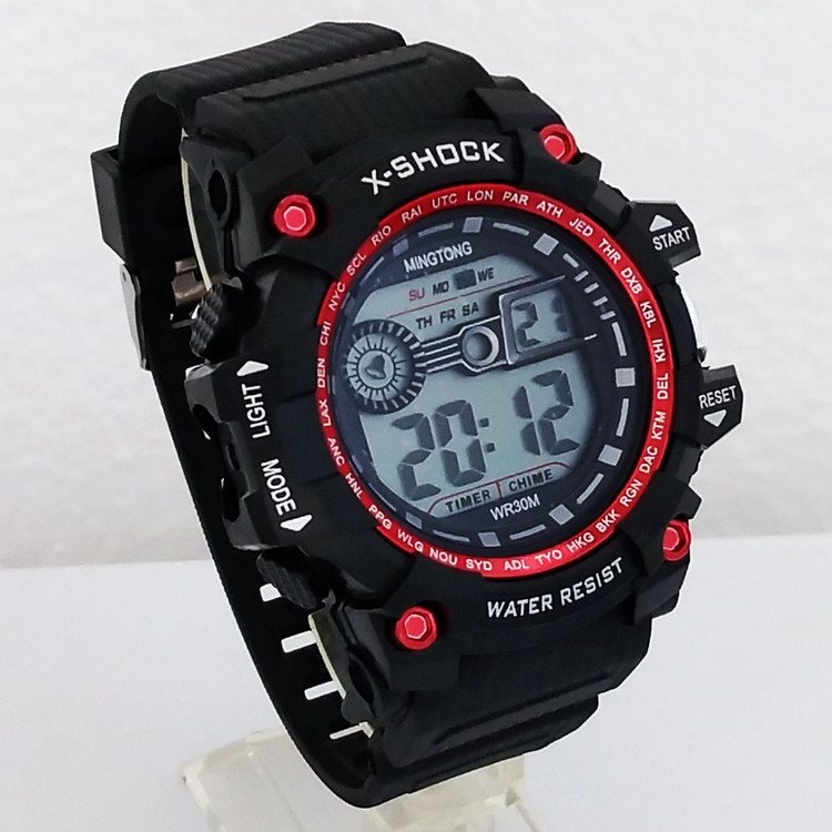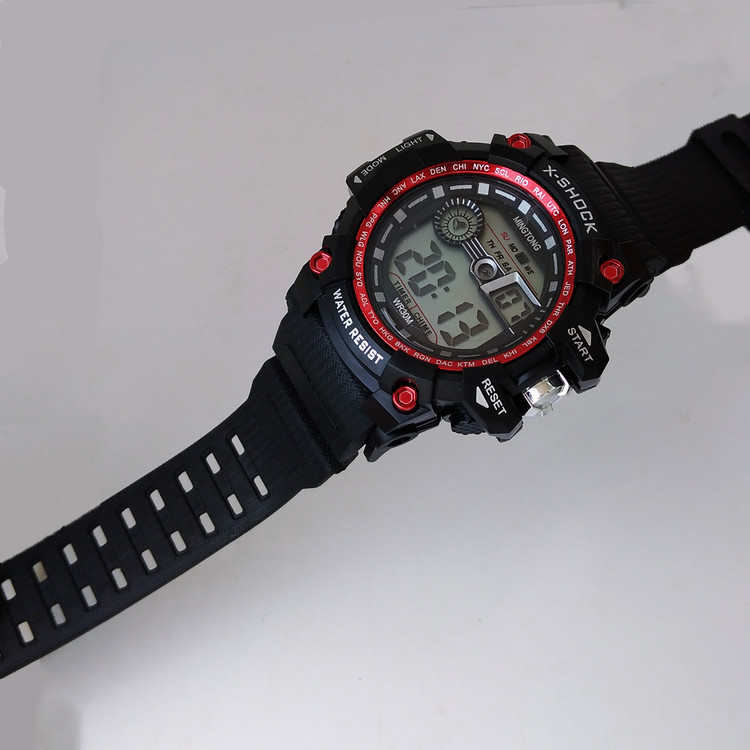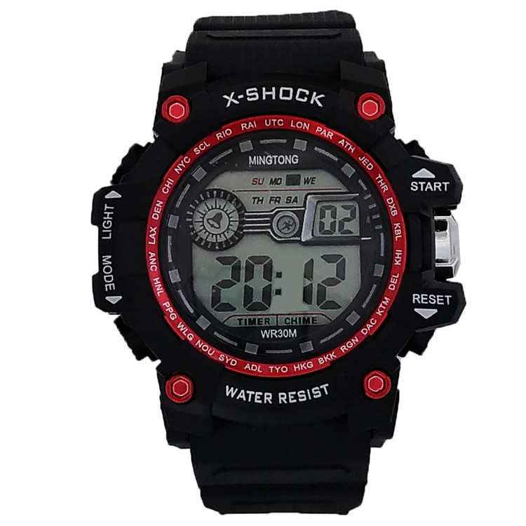 ساعت پسرانه جی شاک دیجیتال مشکی قرمز ضدآب چراغدار کرنومتر اسپرت X-SHOCKورزشیSPORT