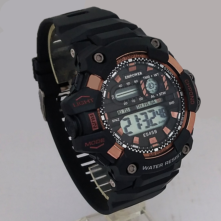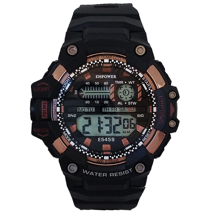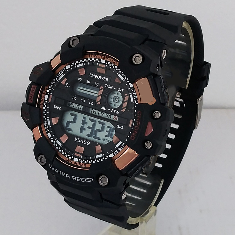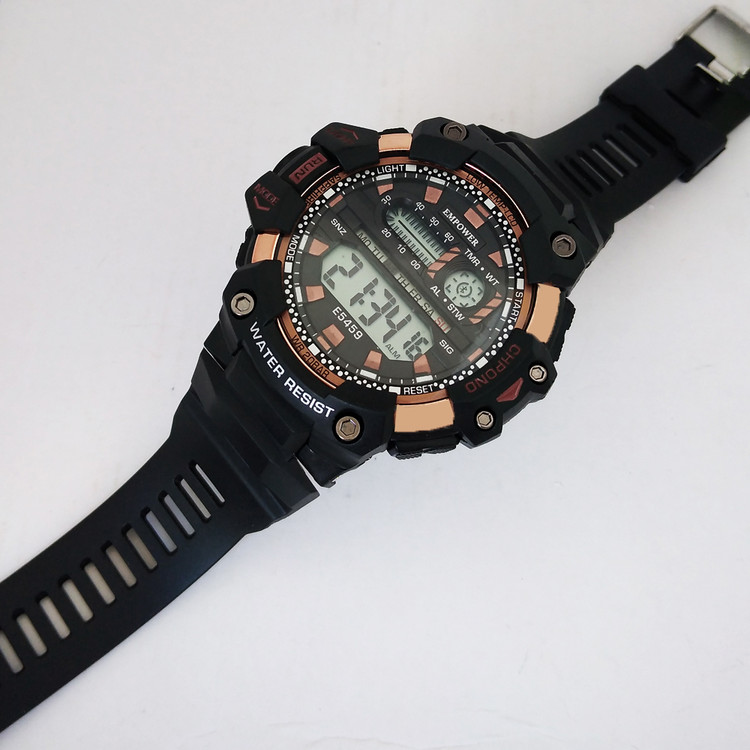 ساعت دیجیتال مردانه امپاور مشکی رزگلد پسرانه ضدآب کرنومتر دار چراغدار تایمر باکیفیت تک سوراخ
