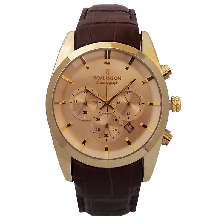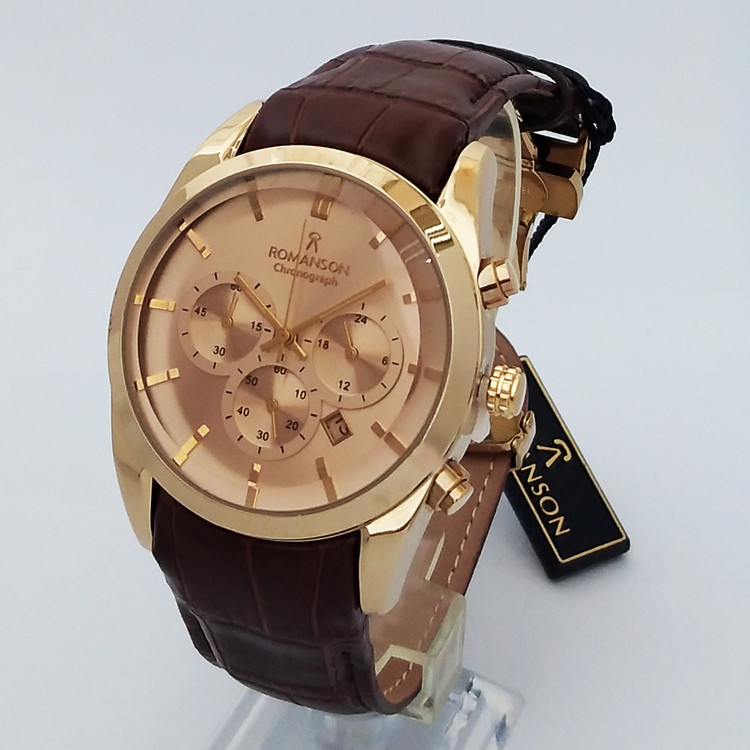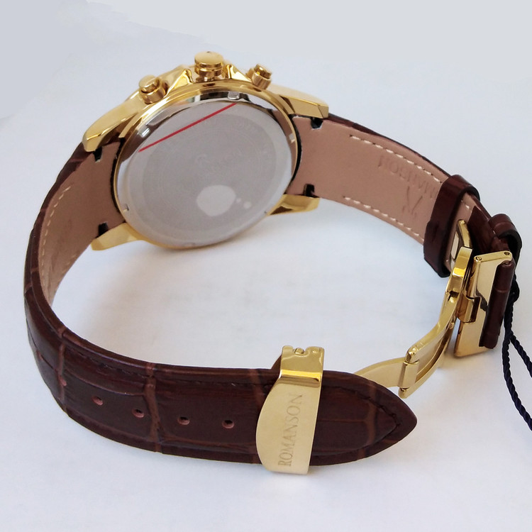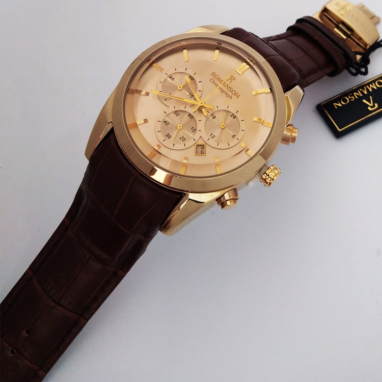 ساعت رومانسون مردانه قهوه ای طلایی بندچرم ROMANSON ضدآب ارسال رایگان ساعت خاص بندچرمی