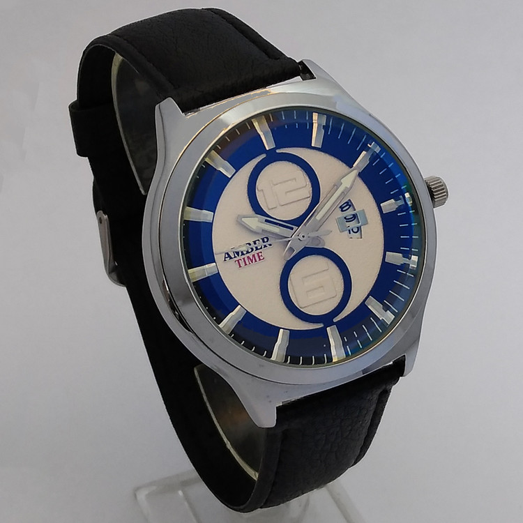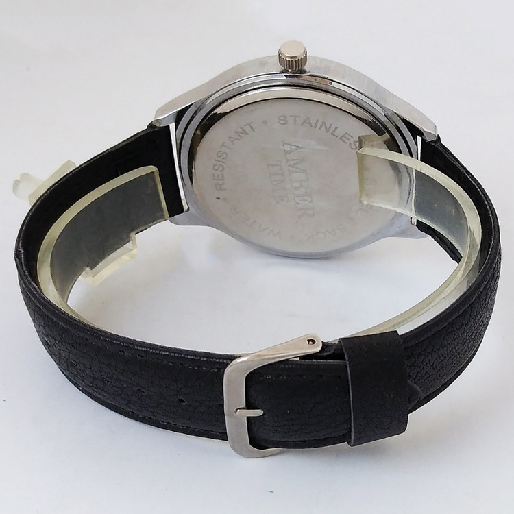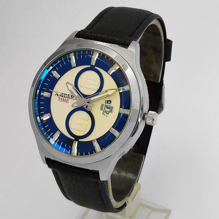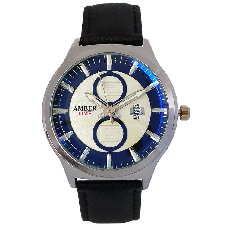 ساعت مردانه بندچرمی تاریخ شمار ساعت مشکی نقره ای کیفیت بالا ارسال رایگان