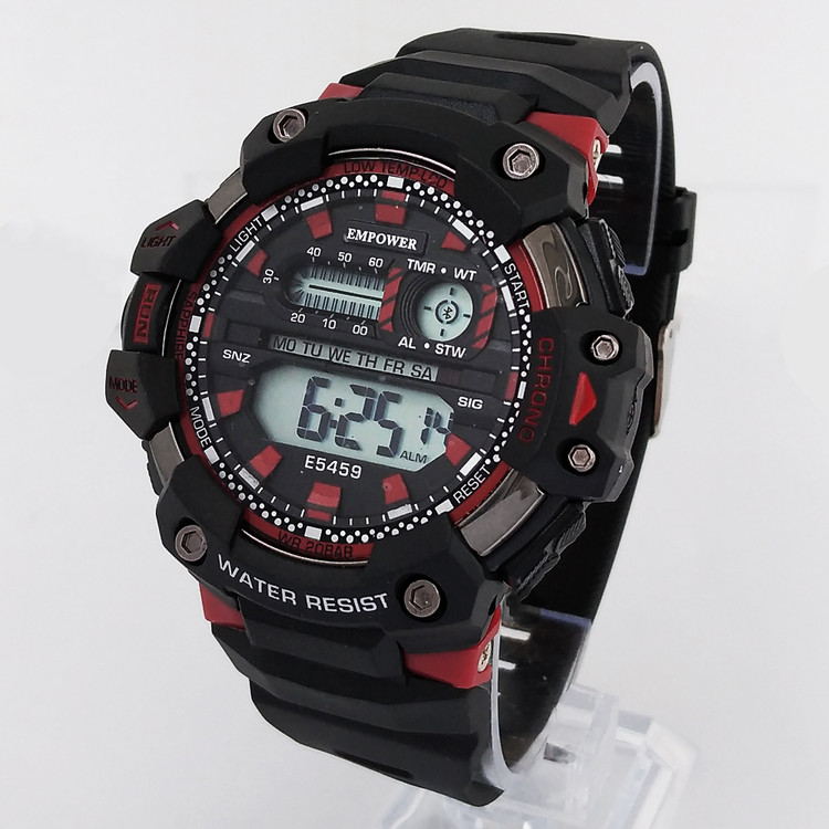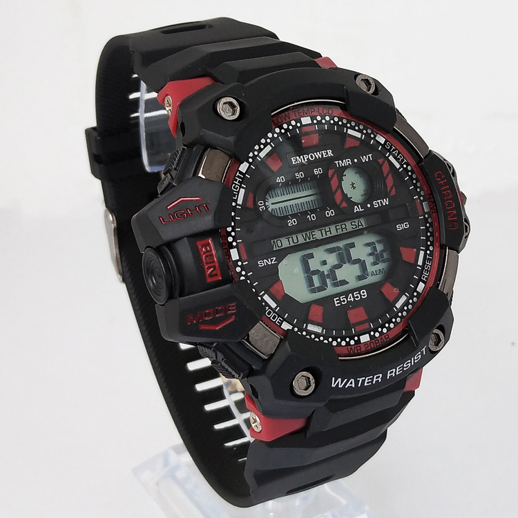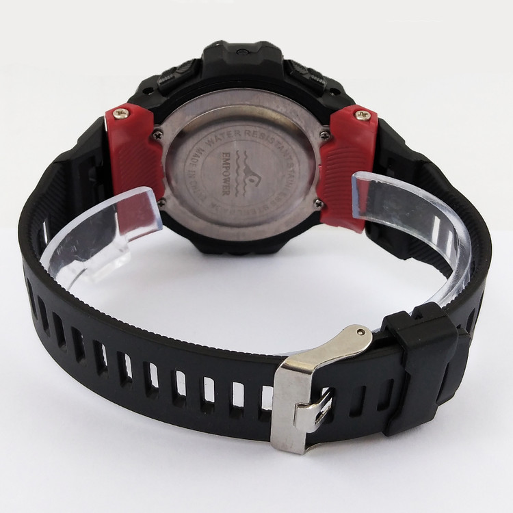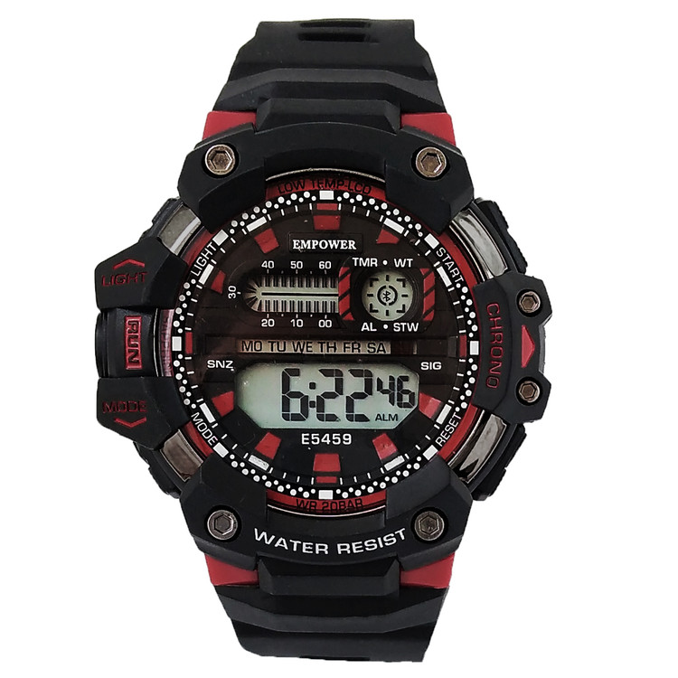 ساعت مچی دیجیتال مردانه امپاور مشکی قرمز EMPOWER مقاوم در برابر آب چراغدار کرنومتردار اسپرت ورزشیSPORT تک سوراخ