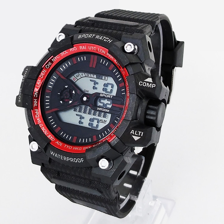 ساعت مچی دیجیتال مردانه و پسرانه مشکی قرمز مقاوم در برابر آب چراغدار کرنومتردار اسپرت ورزشیSPORT ارسال رایگان