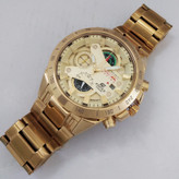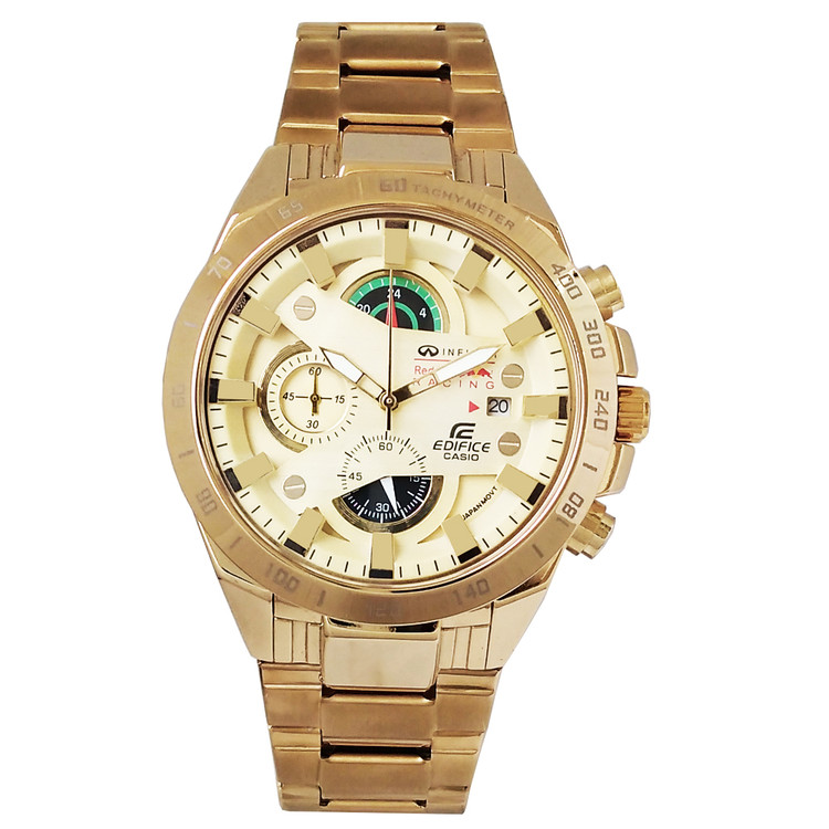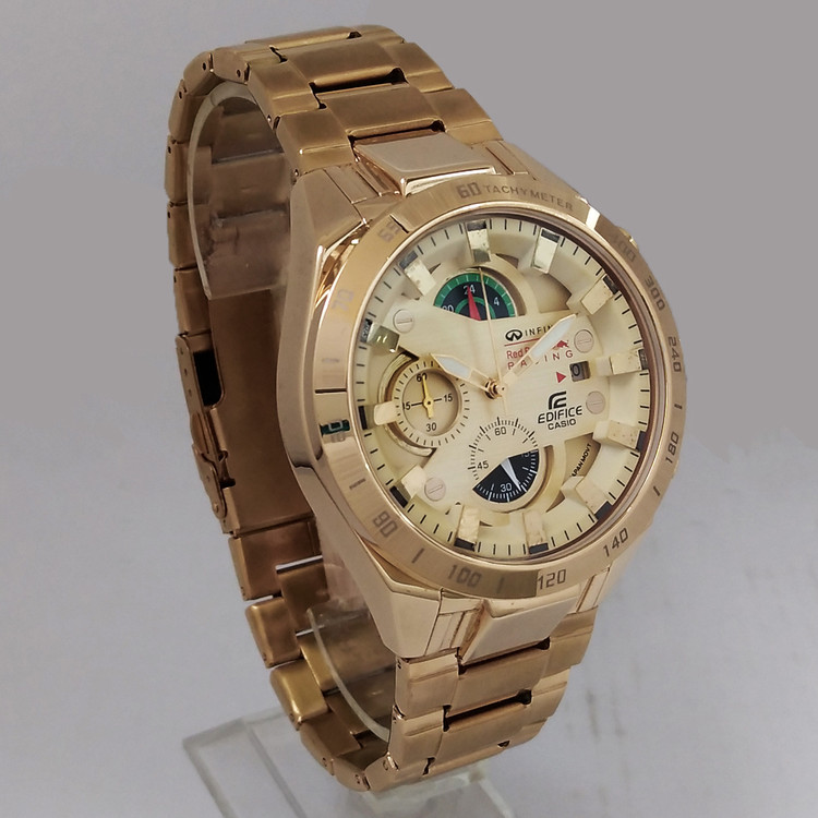 ارسال رایگان ادیفیس مردانه CASIO EDIFICE کرنوگراف سه موتور ساعت بندفلزی ضدآب طلایی