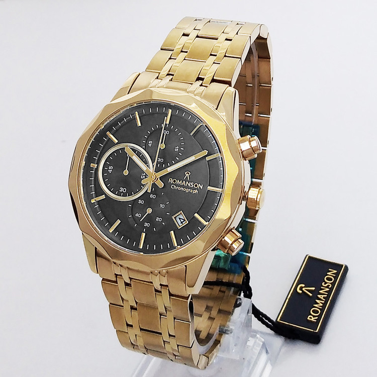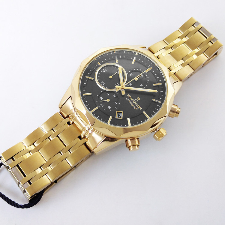 رومانسون ساعت مردانه مشکی طلایی مردانه سه موتور کرنوگراف تاریخ دار ضدآب بندفلزیROMANSON ارسال رایگان کادو