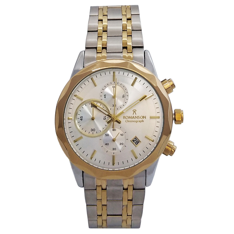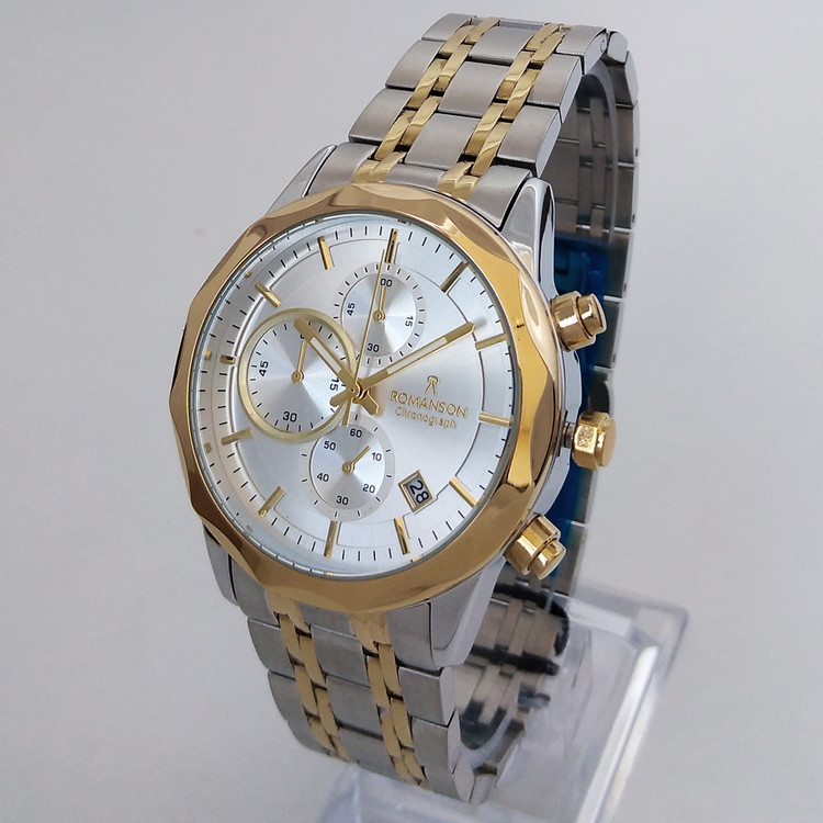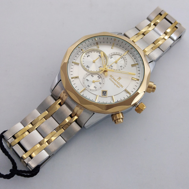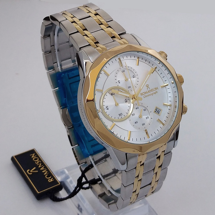 رومانسون ساعت مردانه نقره ای سفید طلا یی مردانه سه موتور کرنوگراف تاریخ دار ضدآب بندفلزیROMANSON ارسال رایگان کادو