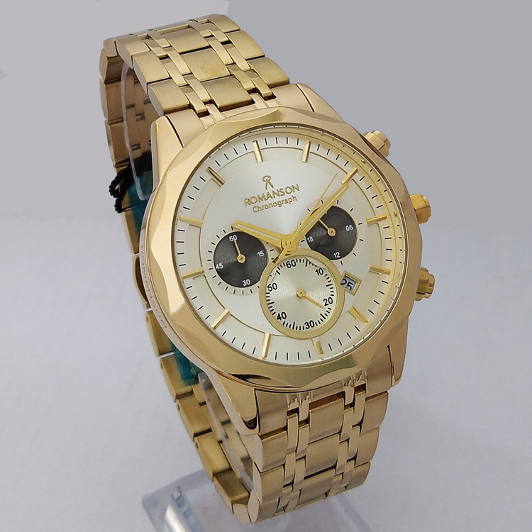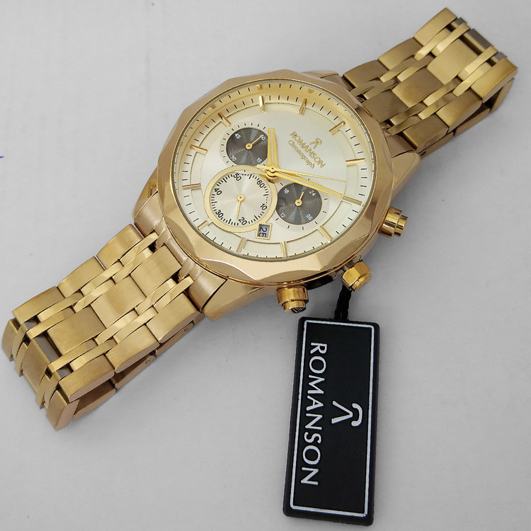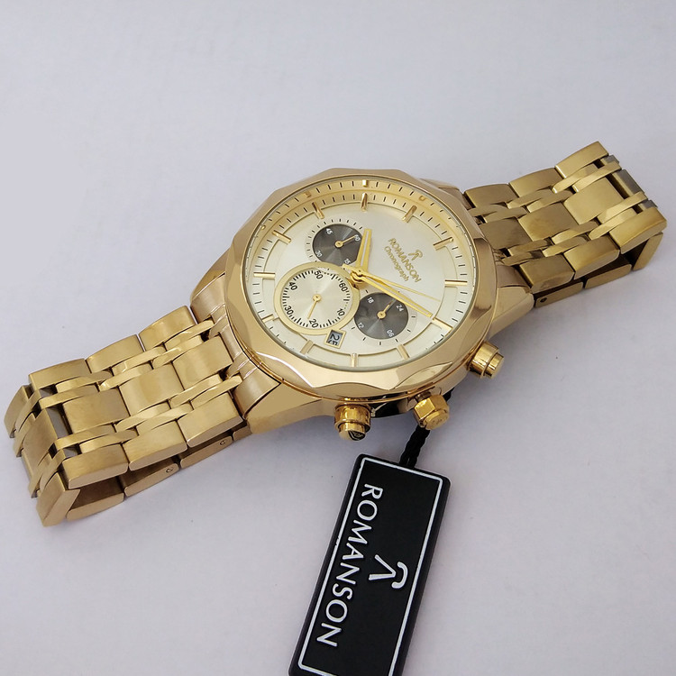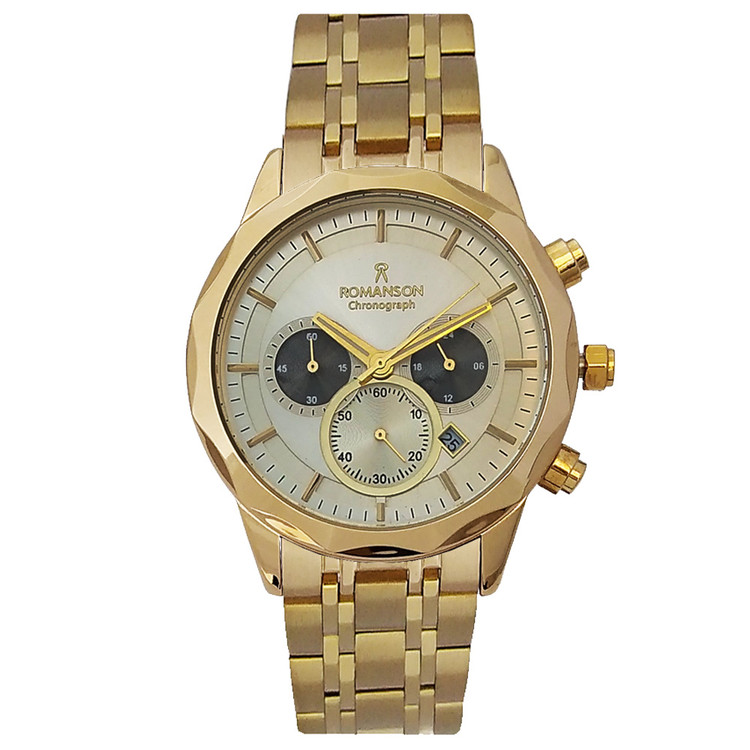 ساعت مچی مردانه اسپرت طلایی SPORT رومانسونROMANSON سه موتوره ضدآب ساعت خاص عقربه ای بند فلزی کرنوگراف
