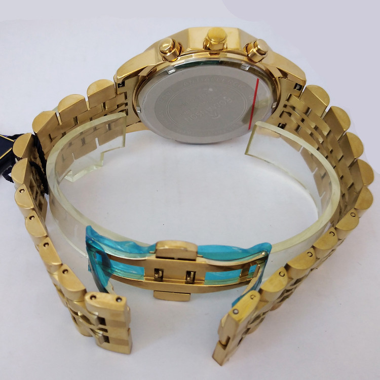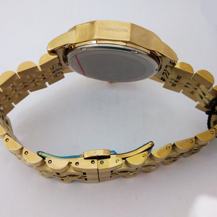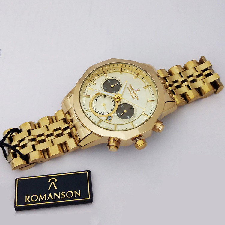 ساعت رومانسون مشکی طلایی مچی عقربه ای مردانه سه موتور کرنوگراف تاریخ دار ضدآب بندفلزیROMANSON ارسال رایگان کادو نقره ای طلایی