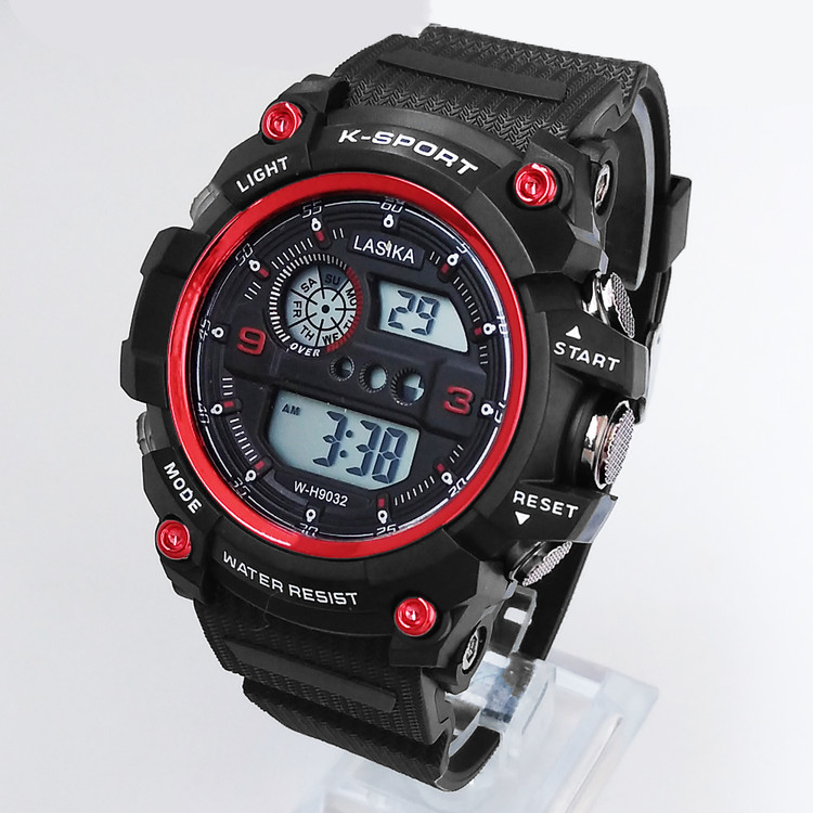 ساعت مچی دیجیتال مردانه و پسرانه مشکی قرمز ضدآب چراغدار کرنومتردار اسپرت ورزشیSPORT ارسال رایگان
