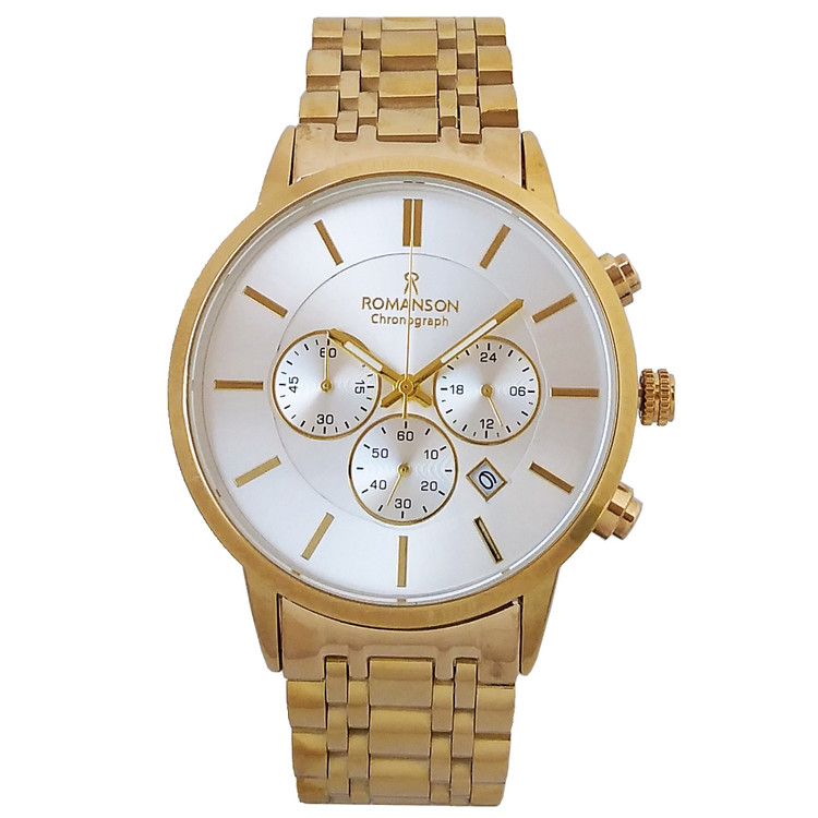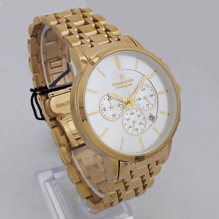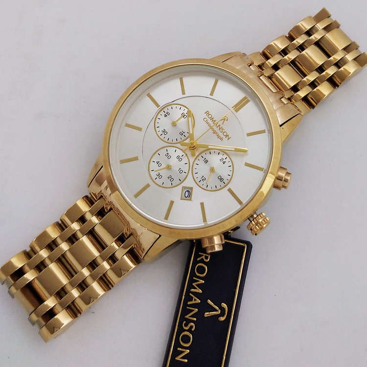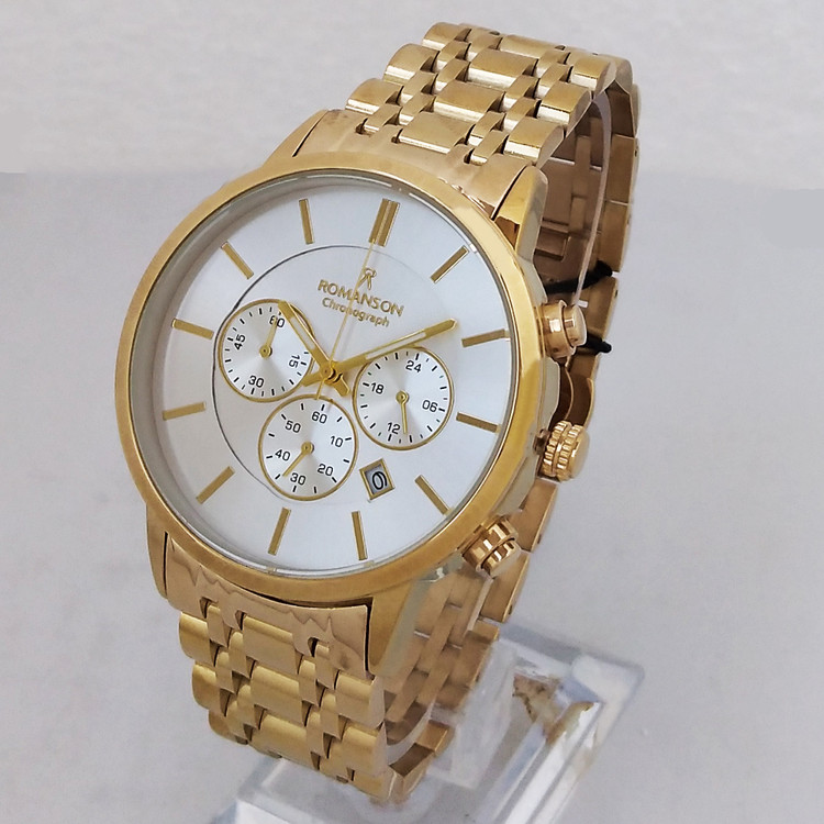 رومانسون مردانه بندفلزی ضدآب تاریخ شمار ارسال رایگان ساعت طلایی سفید حراج ساعت فروش ویژه ROMANSON سه موتور کرنوگراف