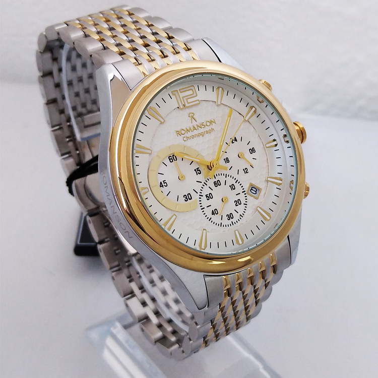 ساعت بندفلزی مردانه رومانسون مردانه طلایی نقره ای سه موتور کرنوگراف تاریخ دار ضدآب ROMANSON ارسال رایگان کادو