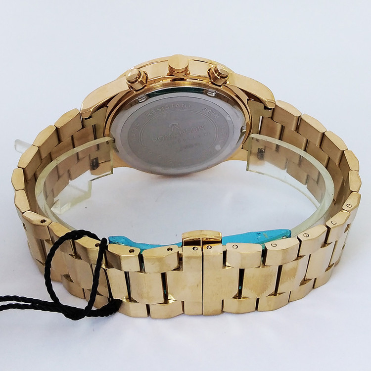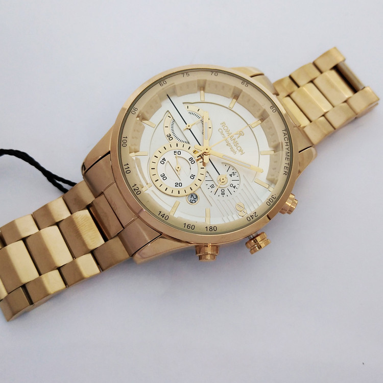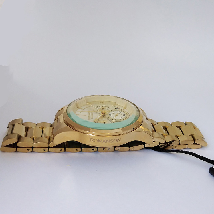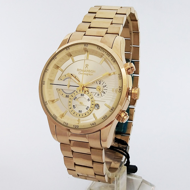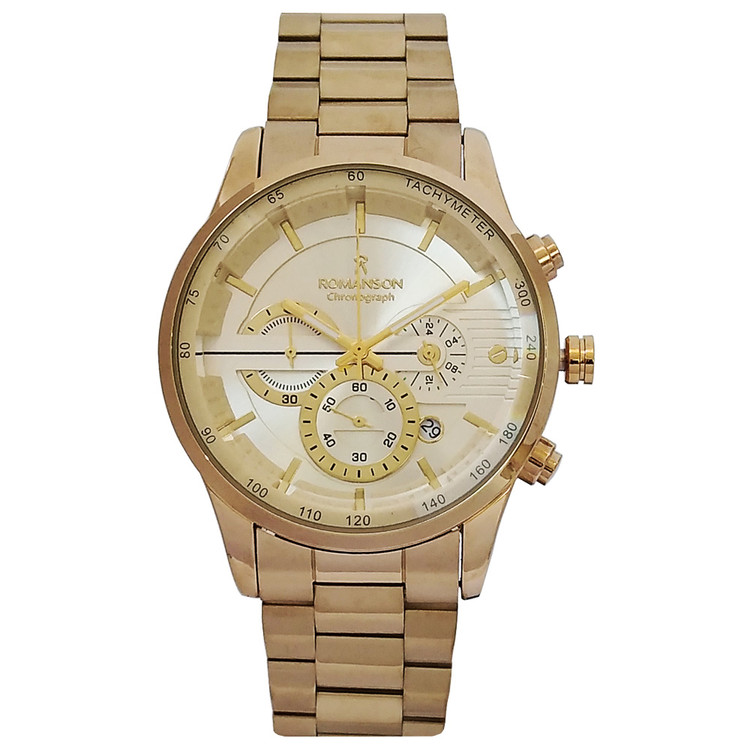 ساعت مچی مردانه اسپرت طلایی سفید SPORT رومانسونROMANSON سه موتوره ضدآب ساعت خاص عقربه ای بند فلزی کرنوگراف