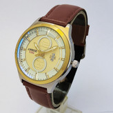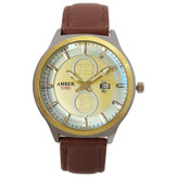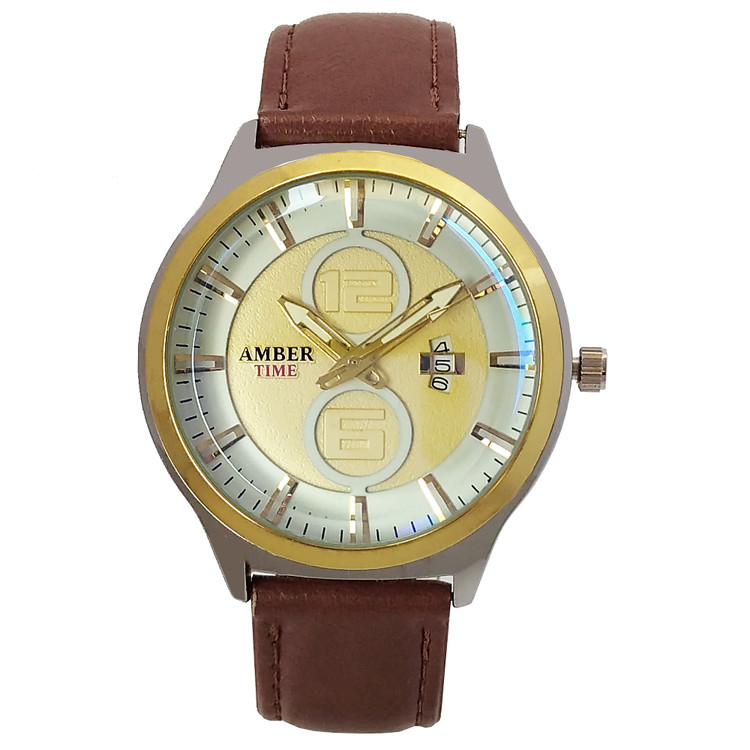 ساعت مردانه بندچرمی آمبر تاریخ شمار ساعت طلایی قهوه ای کیفیت بالا ارسال رایگان