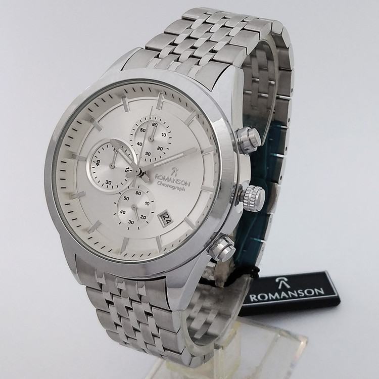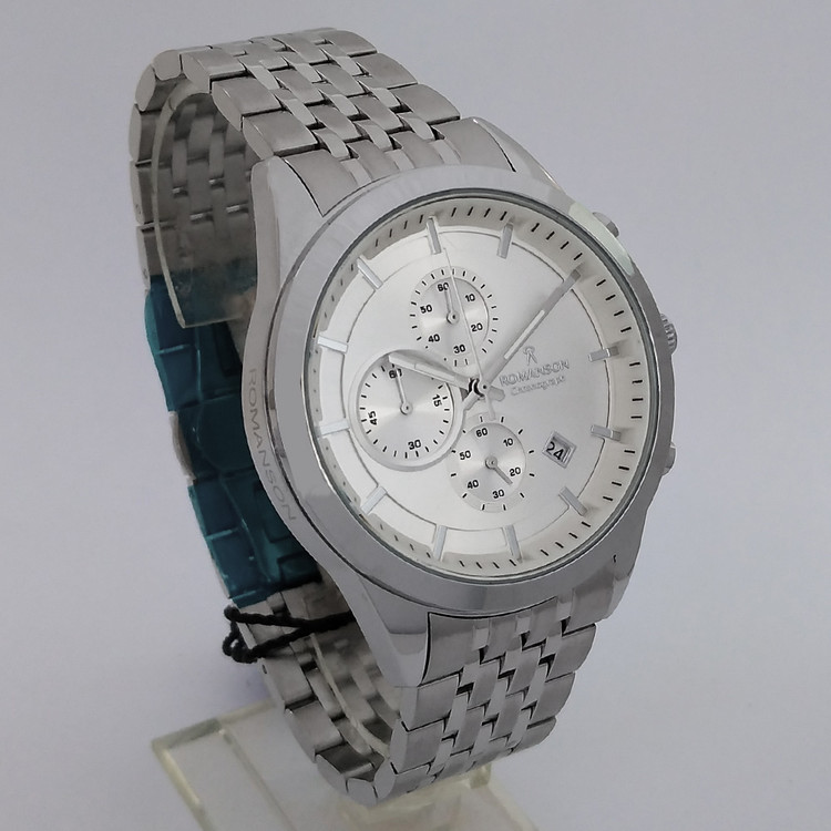 ارسال رایگان کادوروزپدر روزمرد ساعت عقربه ای بندفلزی مردانه رومانسون کرنوگراف سه موتورROMANSON رنگ ثابت