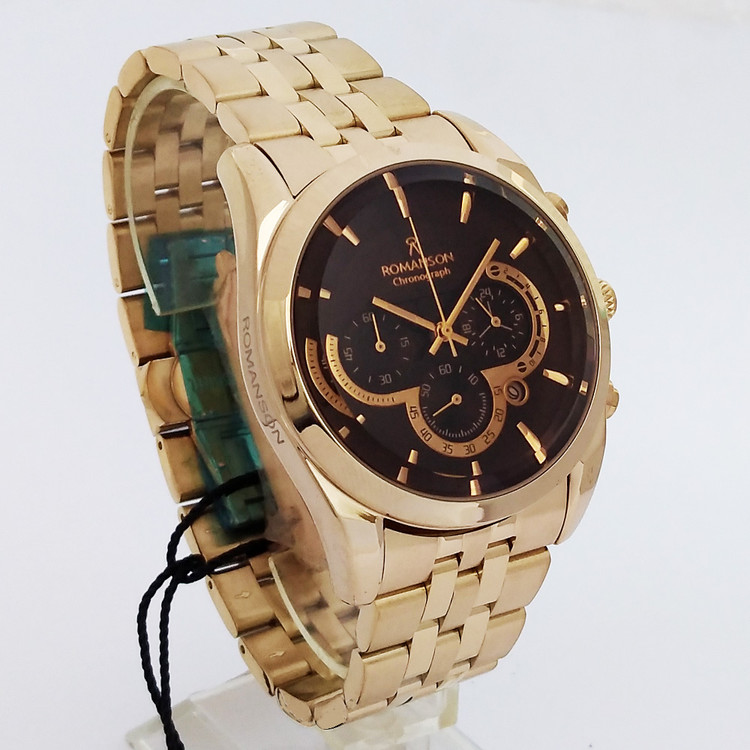 ساعت کرنوگراف رومانسون سه موتوره مچی مردانه اسپرت طلایی مشکی SPORT رومانسونROMANSON ضدآب ساعت خاص عقربه ای بند فلزی کرنو