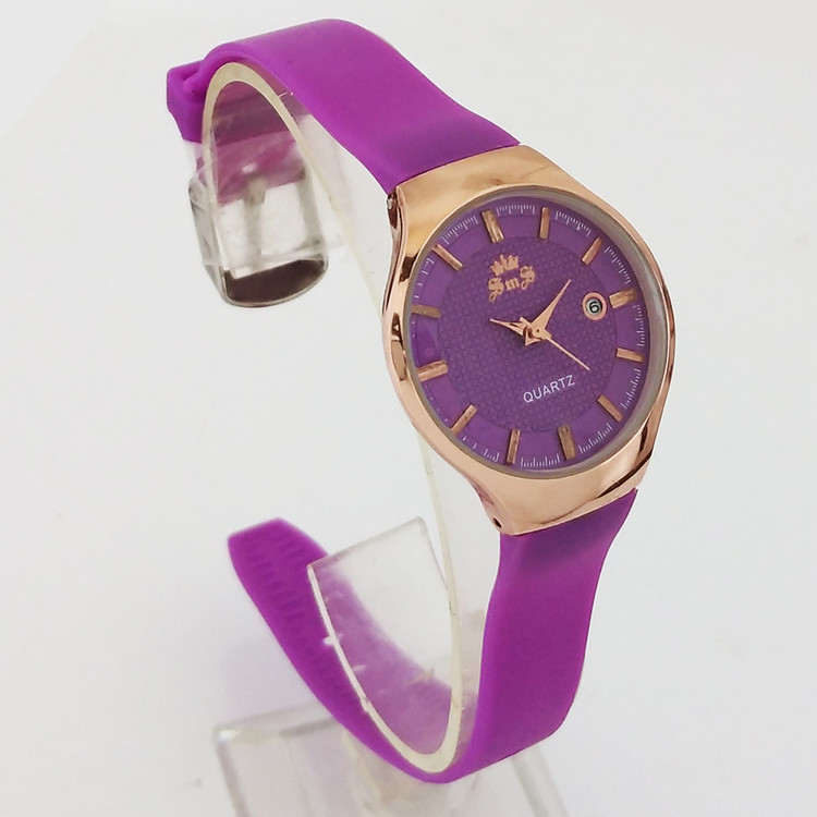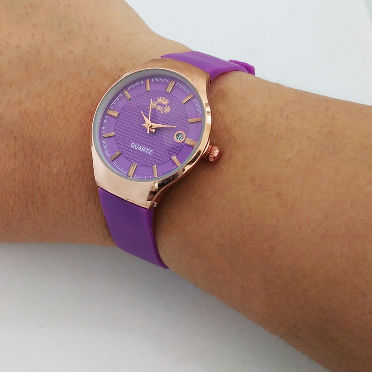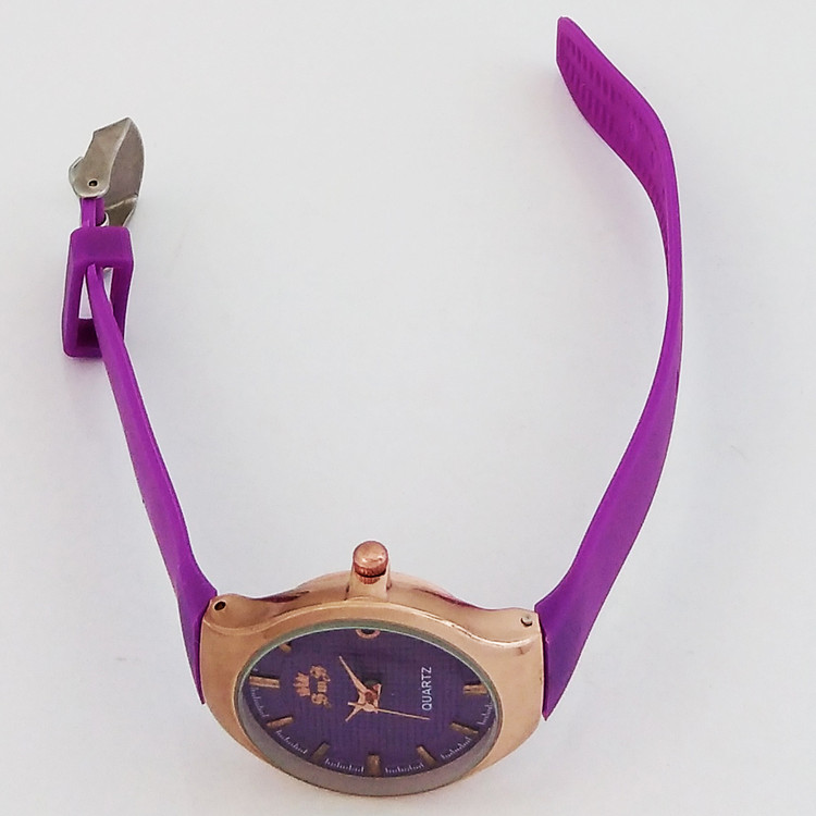 ساعت مچی عقربه ای دخترانه بندسیلیکونی بنفش اسپرت رنگی تاریخ شمار