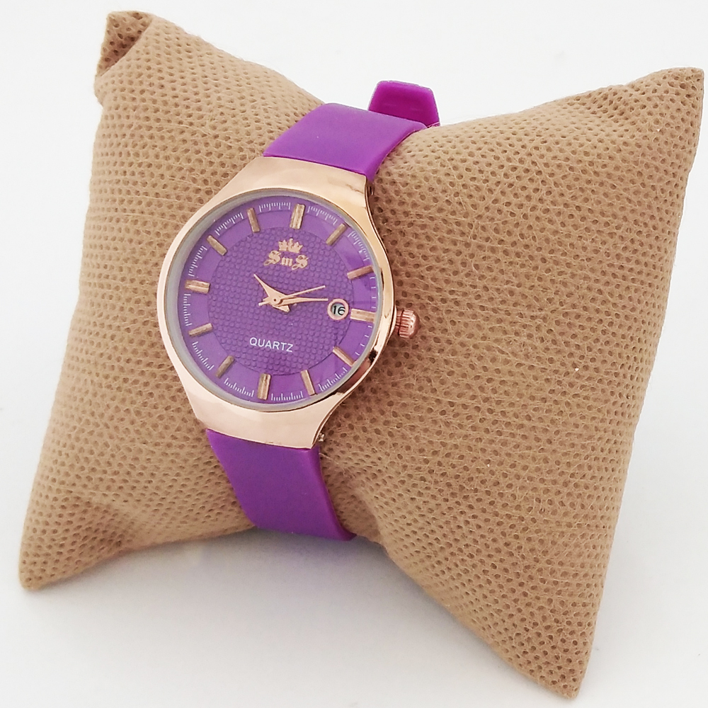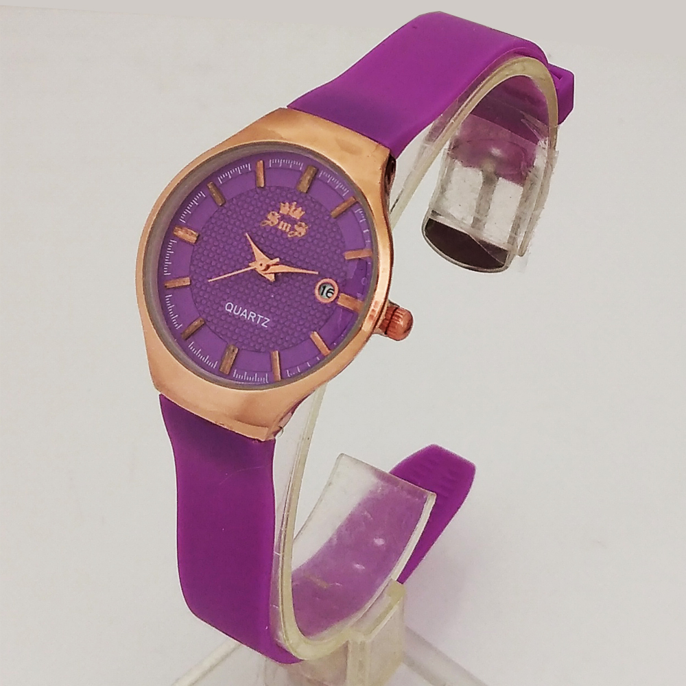 ساعت مچی عقربه ای دخترانه بندسیلیکونی بنفش اسپرت رنگی تاریخ شمار