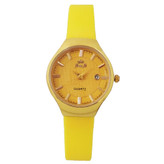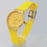 ساعت مچی عقربه ای دخترانه بندسیلیکونی زرد نارنجی طلایی اسپرت رنگی تاریخ شمار