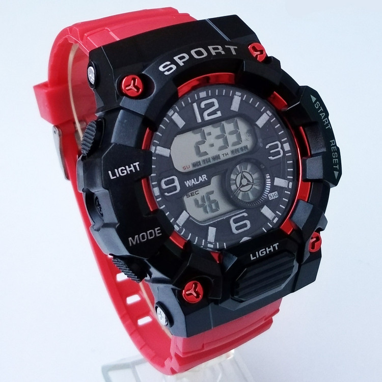 ساعت ورزشی اسپرتSPORT مچی دیجیتال پسرانه و دخترانه مشکی قرمز مقاوم در برابر آب چراغدار کرنومتردار