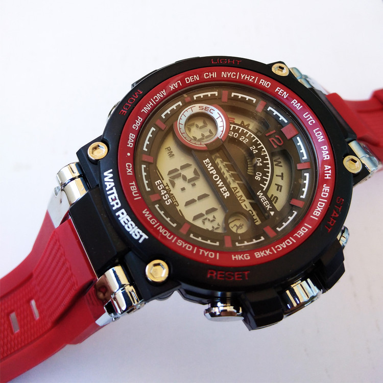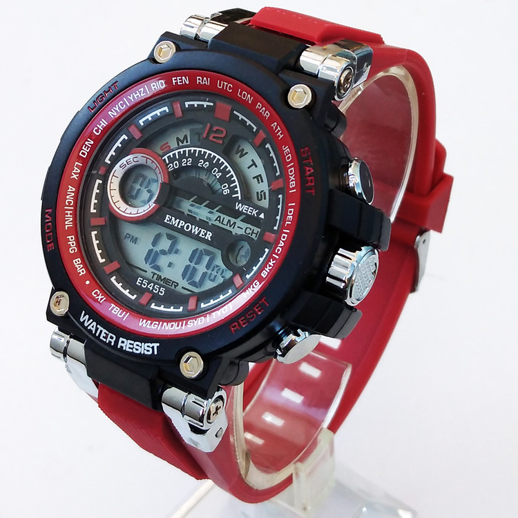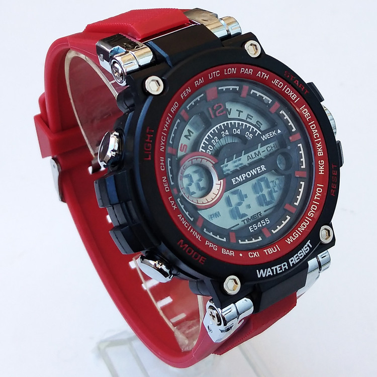 ساعت ورزشی قرمز مشکی اسپرت SPORTارسال رایگان ساعت امپاور دیجیتال مردانه ضدآب کرنومتر دار چراغدار تایمر EMPOWER