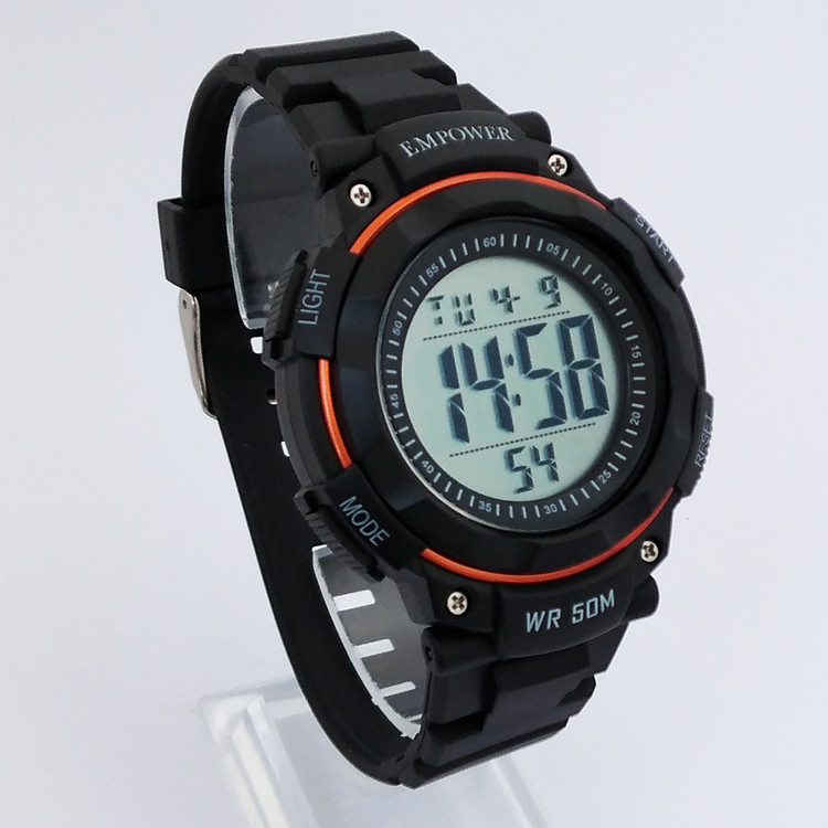 ساعت استخری دیجیتال نارنجی اسپرت مشکی امپاورEMPOWERضدآب پسرانه دخترانه چراغدار SPORT