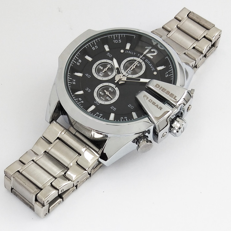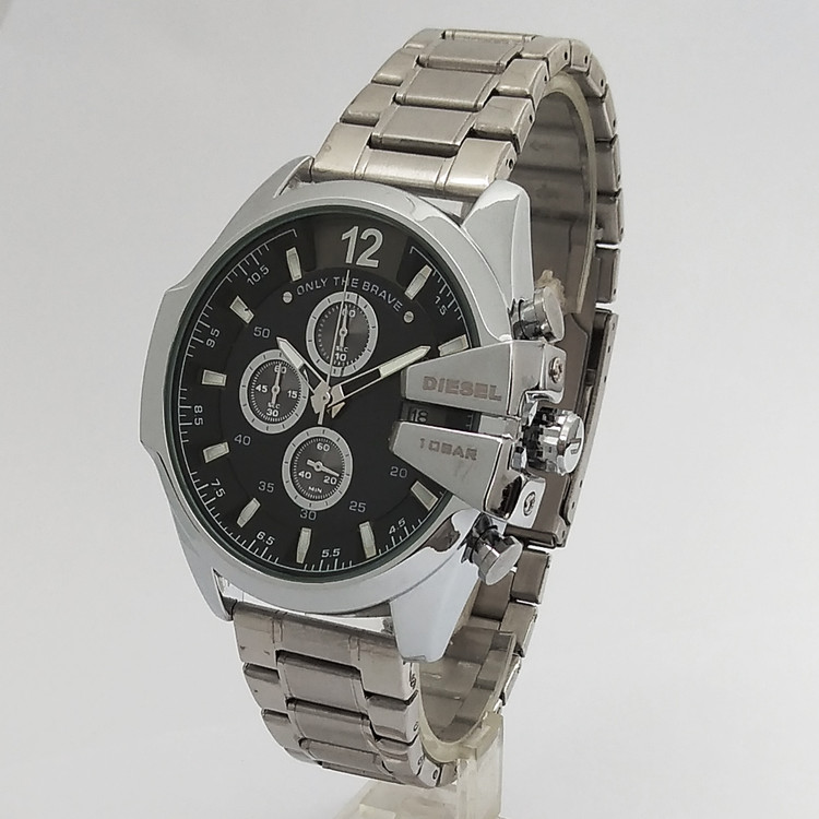 دیزل شاخدار DIESELساعت بندفلزی مردانه سه موتور فعال کرنوگراف ضدآب مشکی نقره ای