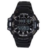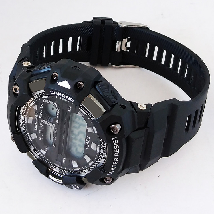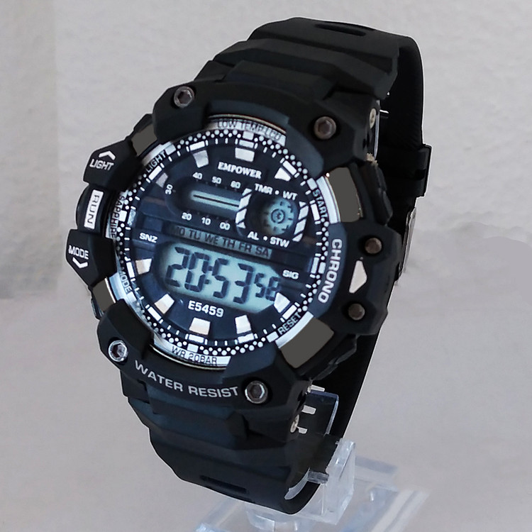 ساعت دیجیتال مردانه امپاور مشکی نقره ای پسرانه ضدآب کرنومتر دار چراغدار تایمر باکیفیت تک سوراخ