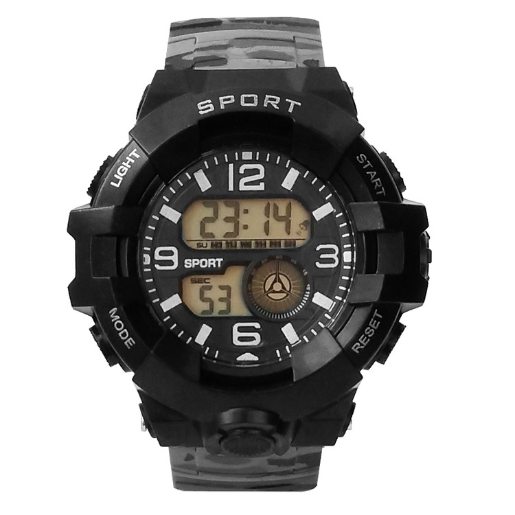 ارسال رایگان ساعت مچی دیجیتال طوسی مشکی ارتشی اسپرت ضدآب کرنومتر دار چراغدار تایمر هدیه ویژه Sport تاریخ شمار