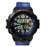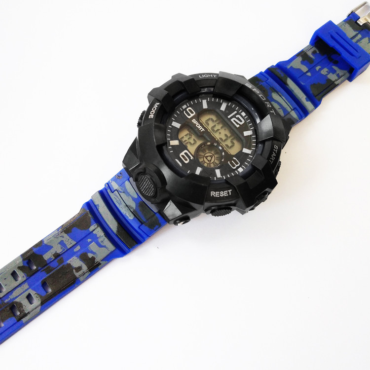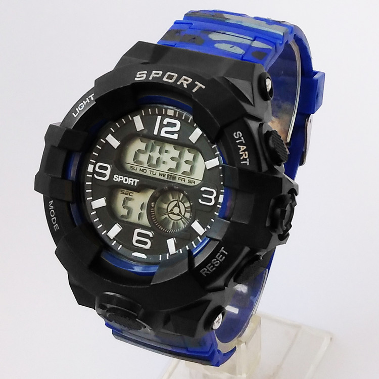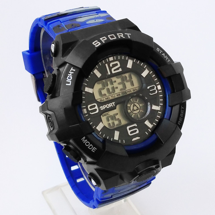ارسال رایگان ساعت مچی دیجیتال آبی مشکی ارتشی اسپرت ضدآب کرنومتر دار چراغدار تایمر هدیه ویژه Sport تاریخ شمار