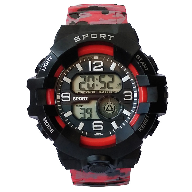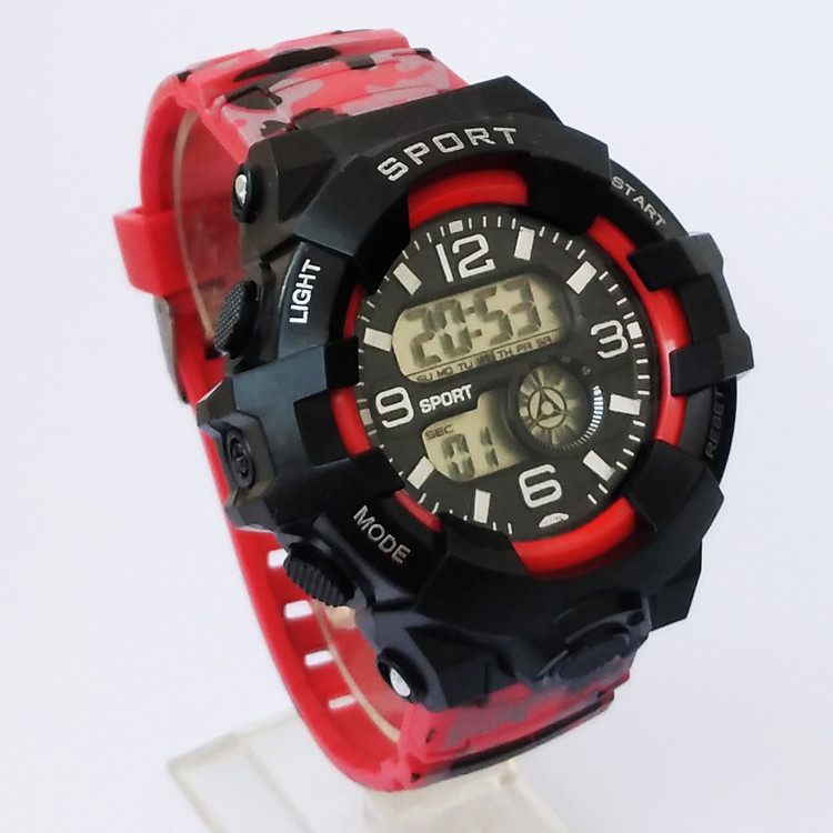 WATCH ارسال رایگان ساعت مچی دیجیتال قرمز مشکی ارتشی اسپرت ضدآب کرنومتر دار چراغدار تایمر باکیفیت تاریخ شمار