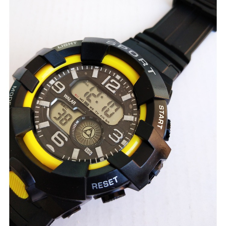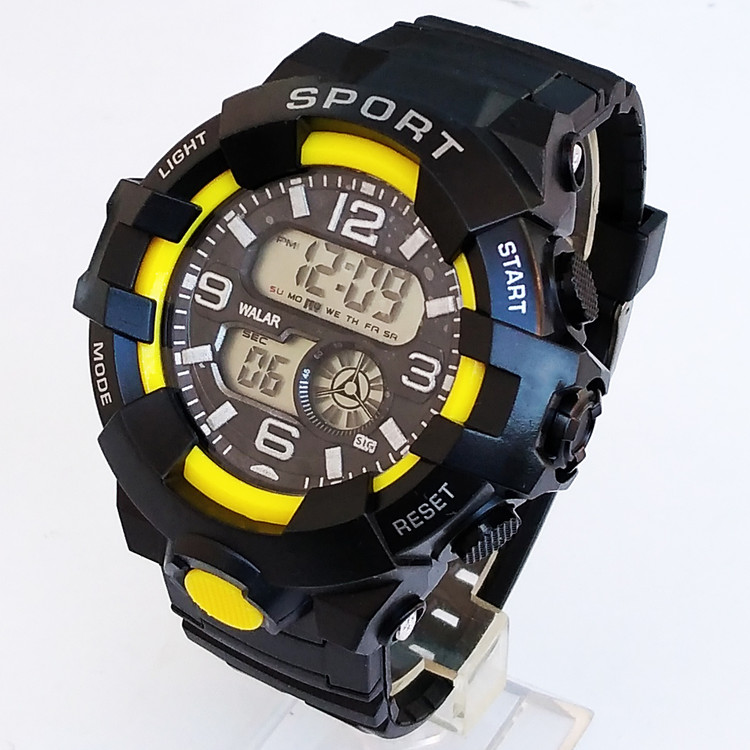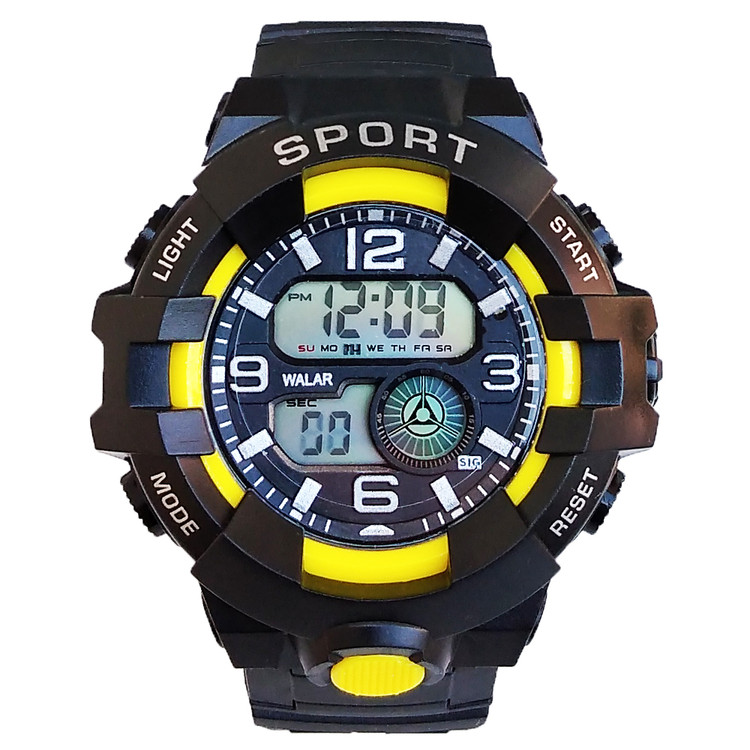 ساعت اسپرت پسرانه WATCH ارسال رایگان ساعت مچی دیجیتال زرد مشکی ضدآب کرنومتر دار چراغدار تایمر باکیفیت تاریخ شمار