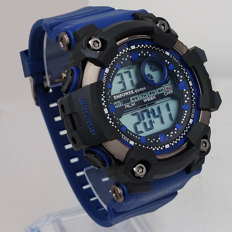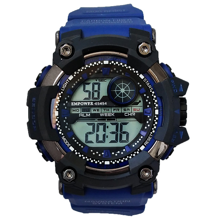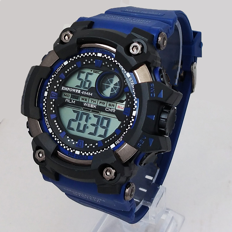 ساعت مردانه اسپرت SPORTپسرانه ضدآب دیجیتال امپاور مشکی آبی کاربنی کرنومتر دار چراغدار EMPOWERتایمر باکیفیت دوسوراخ