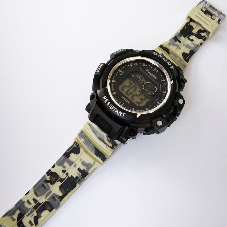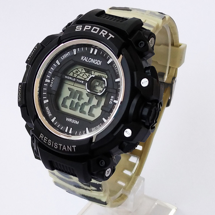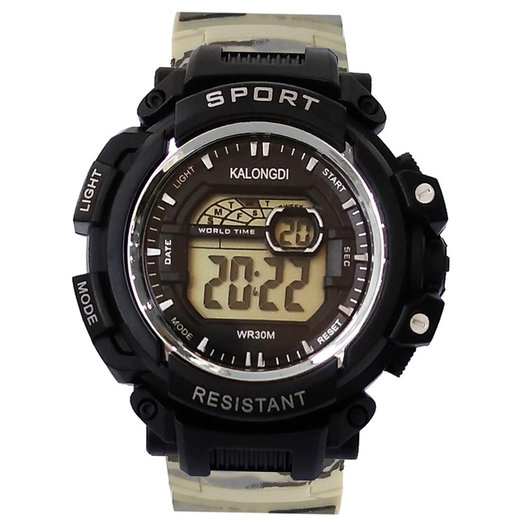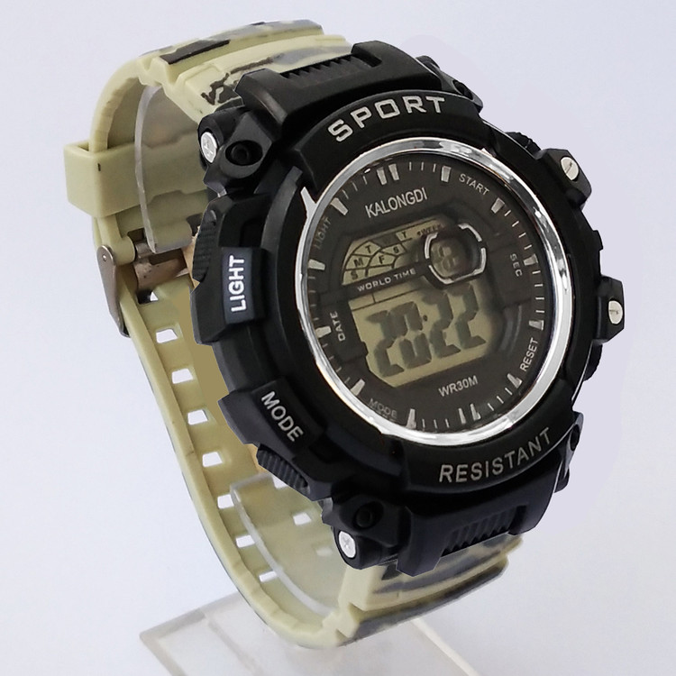 ساعت مچی دیجیتالSPORTاسپرت مشکی کرم ارتشی پسرانه کرنومتر دار چراغ هفت رنگ