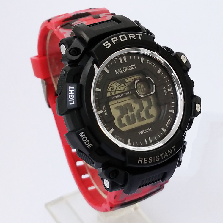 ساعت اسپرت پسرانه کامپیوتری دیجیتال مشکی قرمز ارتشی چریکی کرنومتر چراغدارSPORT والارWALAR