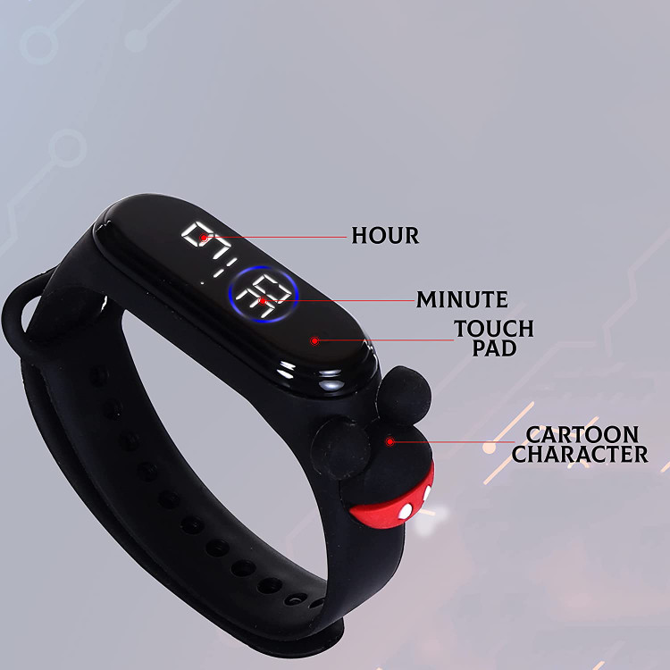 ساعت دیجیتالی LED با نور سفید نشانگر ساعت و تاریخ شمار بند سیلیکونی با کیفیت ساعت بچه گانه دیجیتال کپسولی, یک ساعت مچی بچه گانه با کیفیت عالی و قیمت بسیار مناسب است که به دلیل داشتن طراحی به روز و مینیمال و آیکون فانتزی بر روی بند سیلیکونی و راحتی استفاده از آن، مورد استقبال و علاقه اغلب کودکان قرار می گیرد. صفحه نمایش این ساعت دیجیتال بوده و به صورت لمسی فعال می شود. این ساعت برای سنین 2 تا 18 سال قابل استفاده است.
